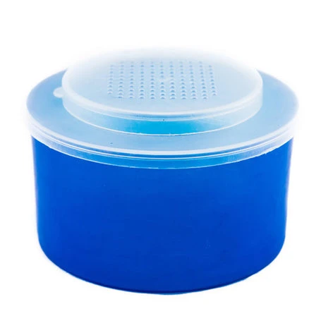 Deze madendoos is vervaardigd uit stevig plastic, met geperforeerd en goed sluitend deksel.